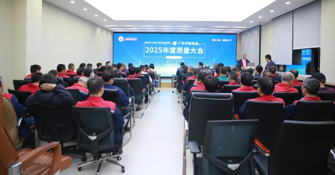 2025年12月23日,广东中联电缆集团内气氛热烈,由品质部精心筹备的2025年质量大会盛大举行。集团常务副总经理易守琼、研发制造中心副总经理徐旺林与全体制造中心成员齐聚一堂,共赴这场品质之约,凝聚奋进力量。此次大会圆满落幕,成为集团品质征程的重要里程碑。