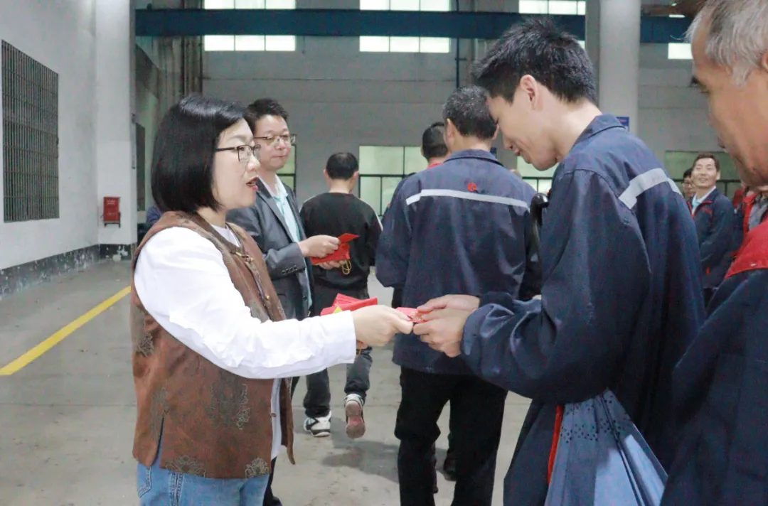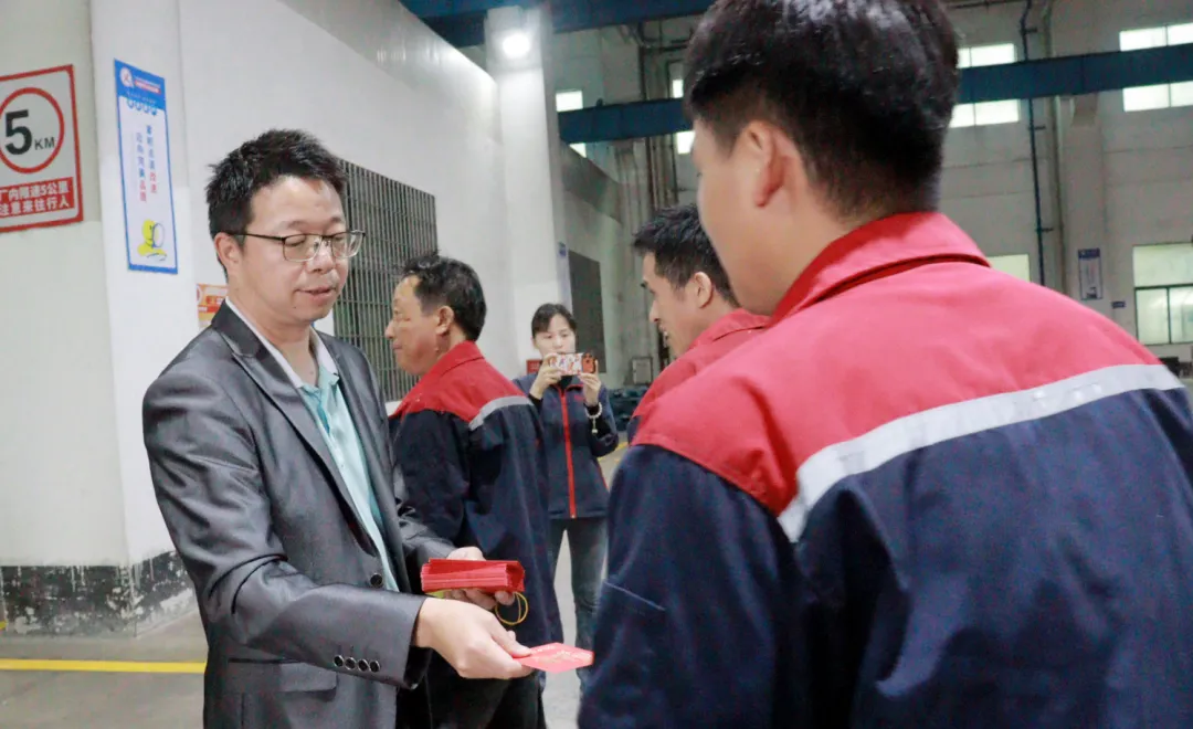集团常务副总经理易守琼女士、研发制造中心副总经理徐旺林先生走进车间,为车间同事送上饱含祝福的红包,并向全体员工及家属送上新春诚挚祝福,感谢大家过去一年的辛勤付出。接着,他们鼓励大家即刻切换至“奋斗模式”,以“万马奔腾”之姿、“一马当先”之态,在新的一年乘风破浪、再谱华章。