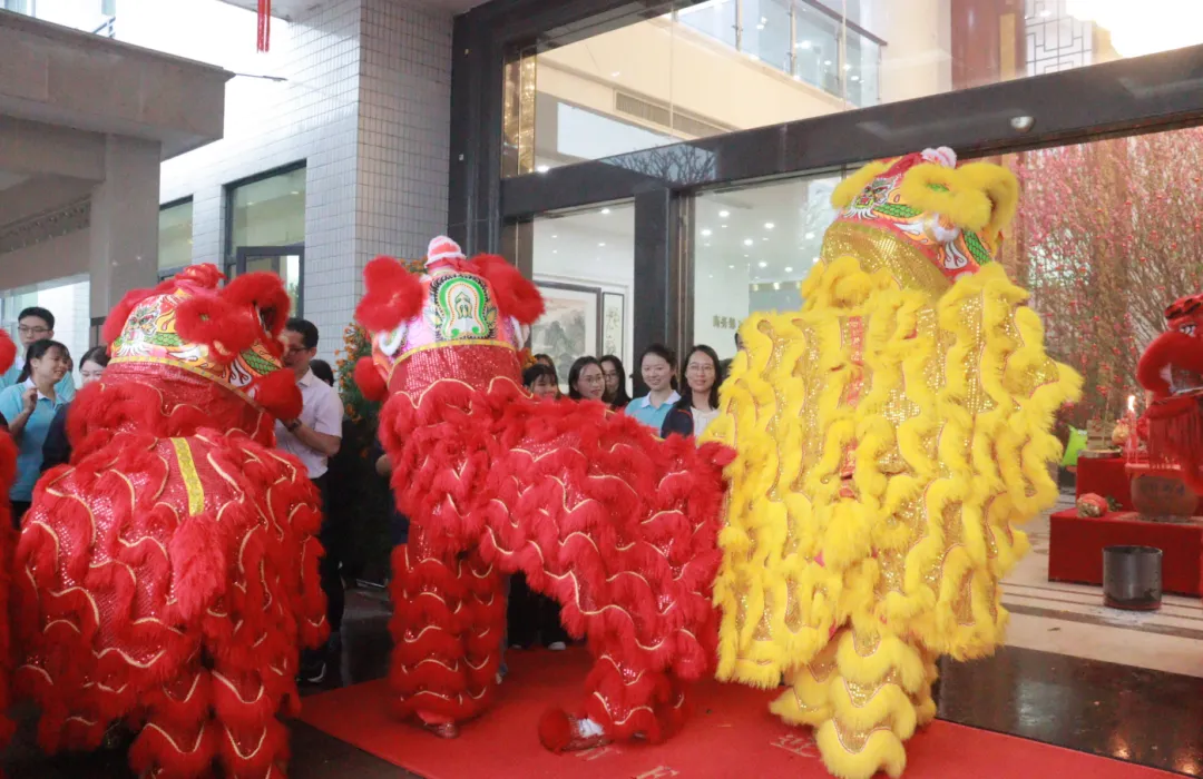 舞狮团一路舞进公司大门,将财气、福气统统送进中联的每一个角落,寓意着集团在新的一年里财源广进、好运连连。