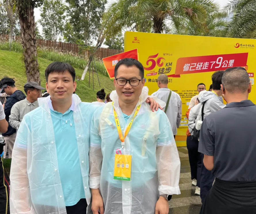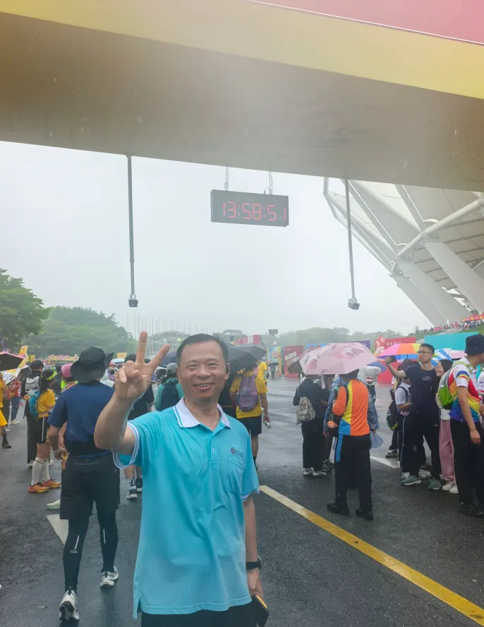研发制造中心副总经理徐旺林和设备部经理杨辉波,作为企业代表中的领先人物,无疑是此次徒步的先锋。他们步伐稳健,眼神专注,在雨中坚定地朝着终点迈进,如同勇往直前的战士,以无畏的勇气和顽强的毅力为企业代表们树立了榜样。13:59:13,经历5小时29分,他们携手冲过终点线,他们用行动诠释了拼搏与坚持,成为了企业代表们心中的楷模,更是这次徙步中企业团队的第一名,激励着大家在企业的征程中奋勇向前,勇争第一的精神。