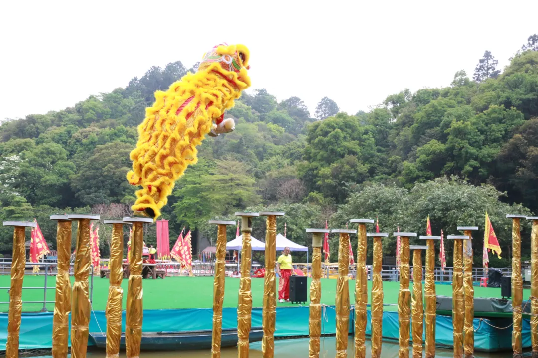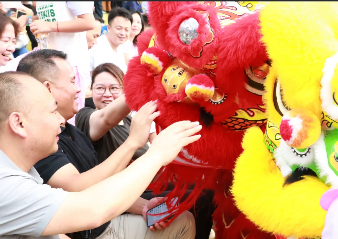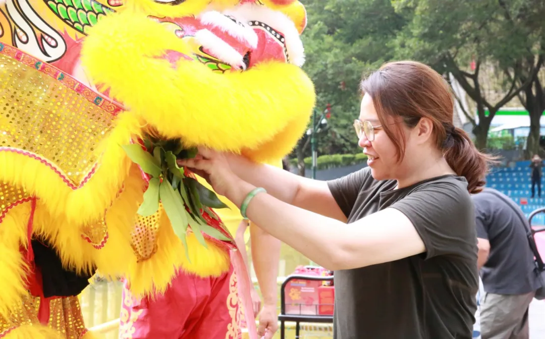 行至一处表演台,热闹的氛围扑面而来。中联集团旗下黄飞鸿舞狮团盛装亮相,威风锣鼓震天响。灵动的狮舞,时而跳跃,时而翻滚,活灵活现地展现着龙狮精神的豪迈与勇毅。采青环节,狮子精准接住“青”,寓意接祥纳福。大家纷纷围拢,与龙狮热情互动,脸上满是自豪,仿佛从这传承千年的龙狮精神中汲取到了无尽力量,士气大振。