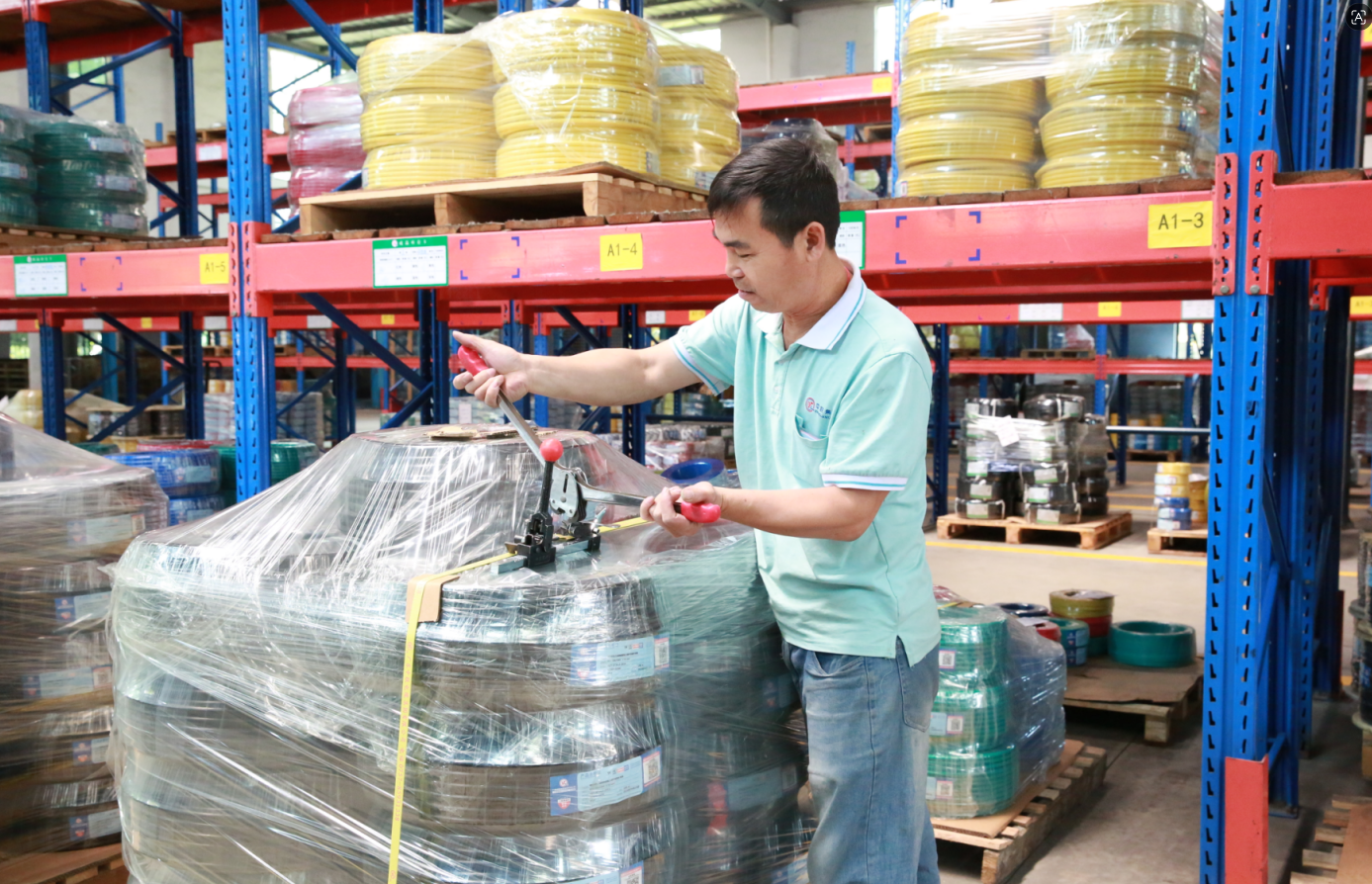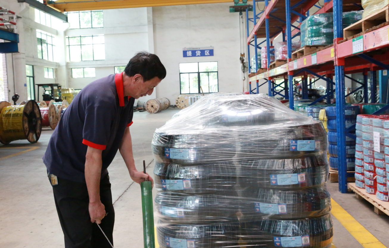 走出车间,走进仓库,发货打包员正忙碌地将电线电缆进行细致固定打包,确保它们在运输过程中不受损坏;
